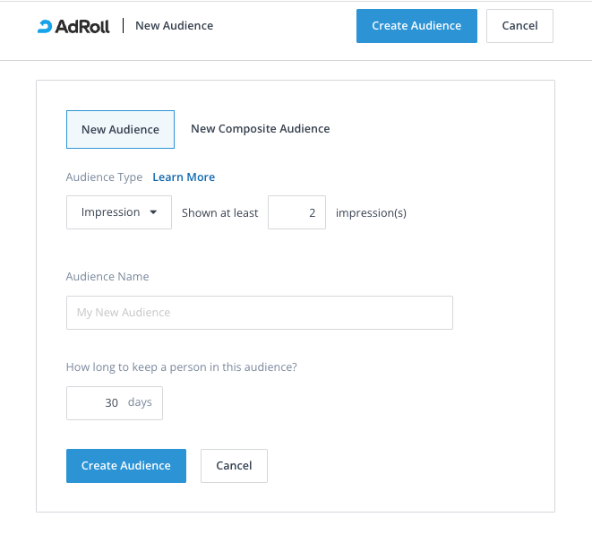 Impression Audiences are used to segment your website visitors based on a minimum numbers of web impressions served by AdRoll.