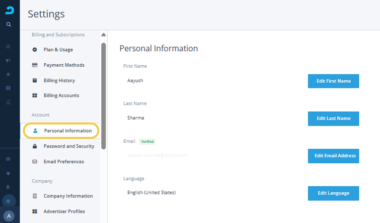 Note: When you edit your email address you will need to verify this new email address before it will be saved or used by NextRoll.
