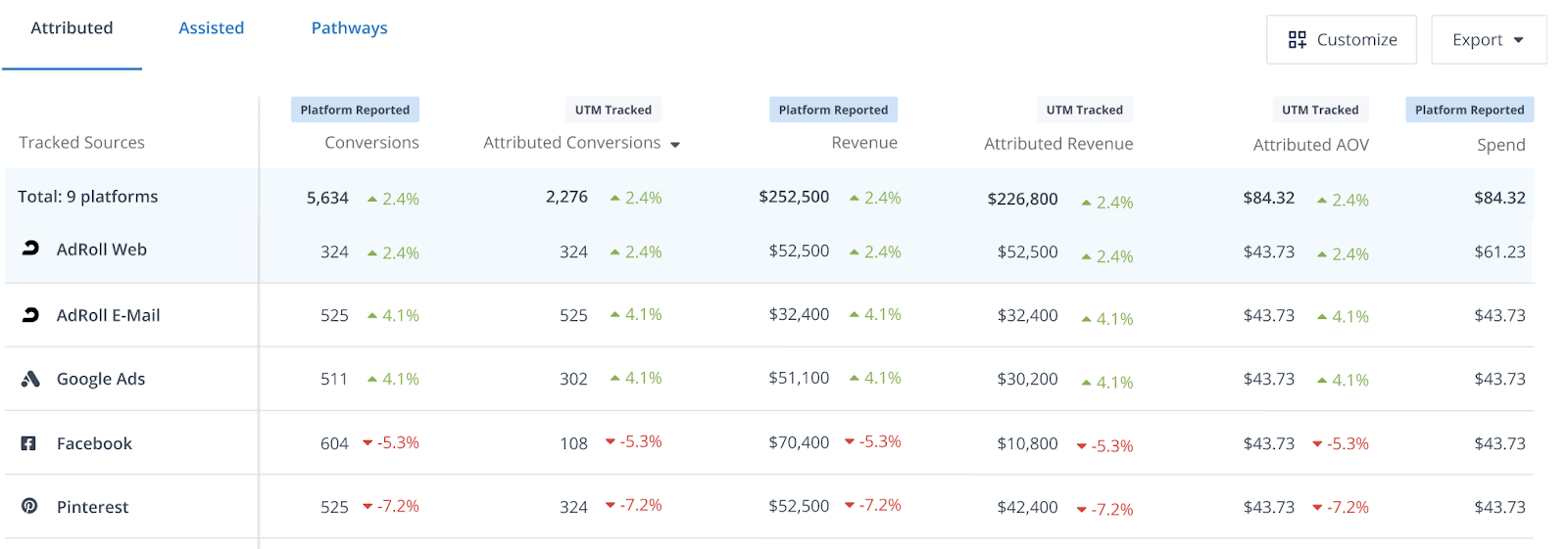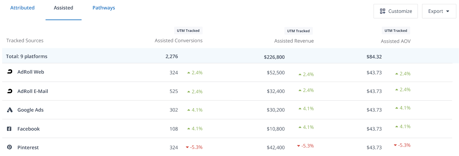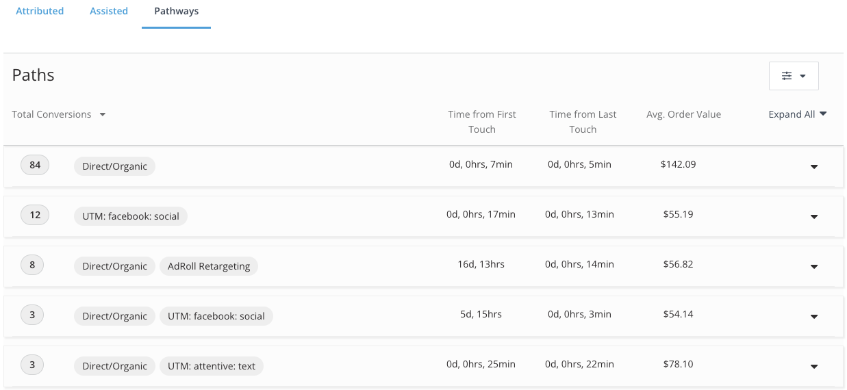 Un-silo your marketing stack and review your spend, performance and conversion data: There are three tabs of data that drills into each of your channel's influence on conversion. These included attributed conversions, assisted conversions, and pathways.