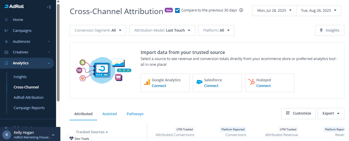 | Your AdRoll Plan | Cross-Channel Attribution |