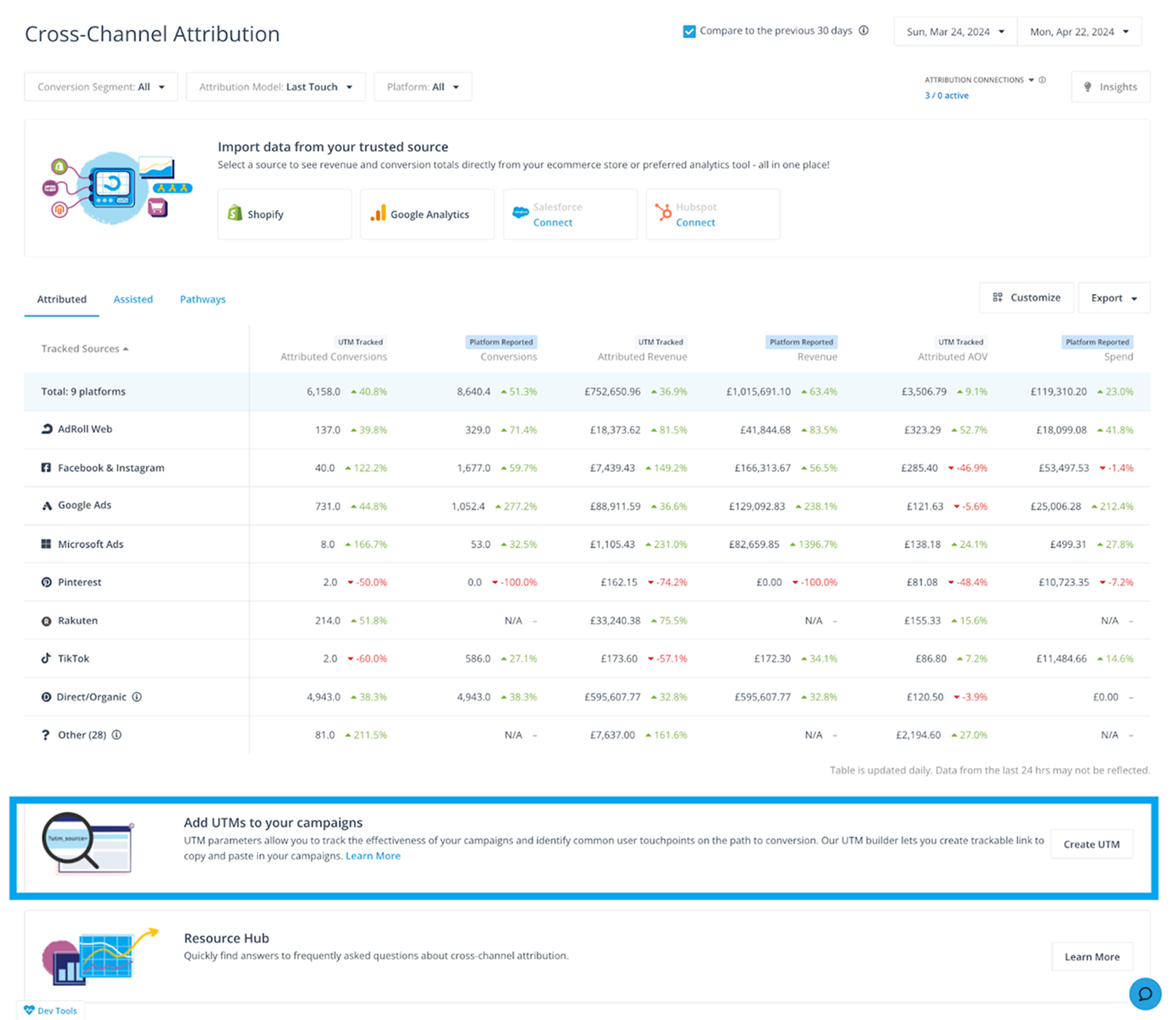 Gain a more holistic view with UTM-tracked data and Platform-reported data in one place:
