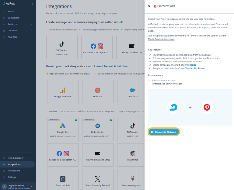 Access to Cross-Channel Attribution is available for the following AdRoll packages.
