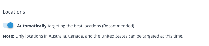 If you toggle on Locations to Automatically, we will target the best locations within the United States, Canada, and Australia.