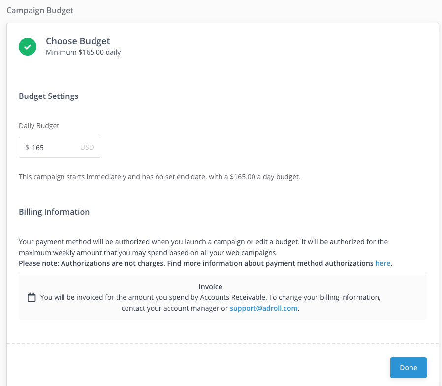 Click here to learn about budget and audience size requirements based on your AdRoll package.