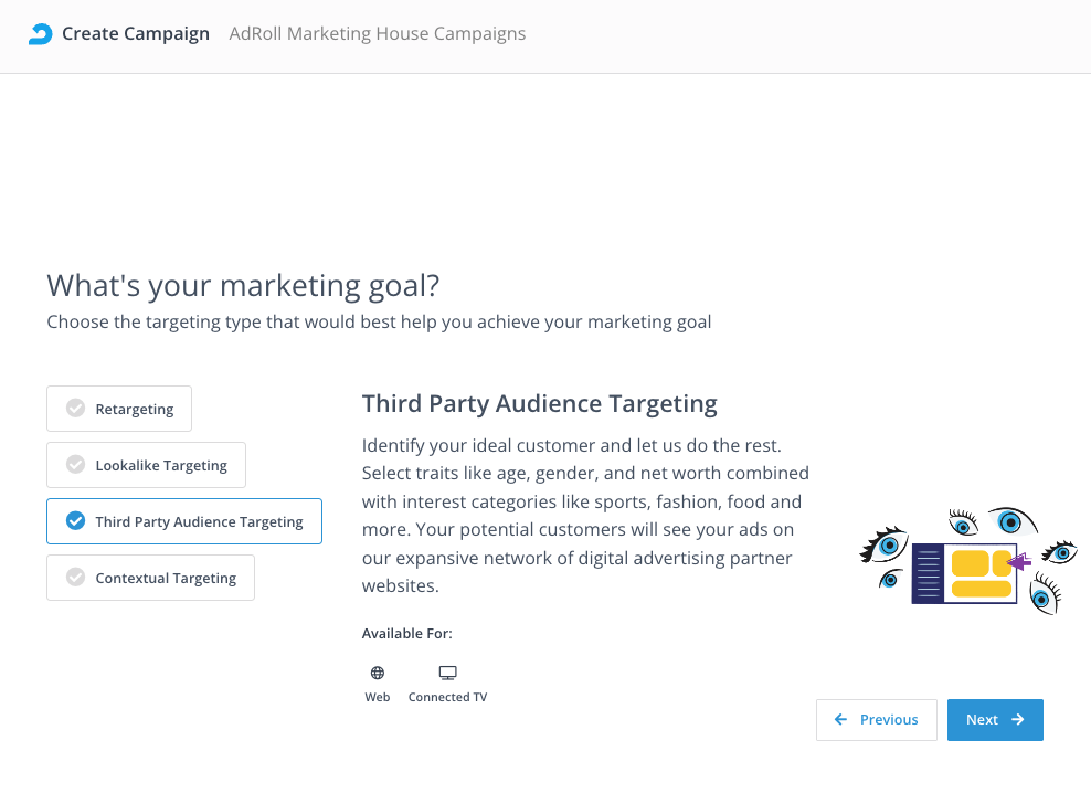- Select Third Party Audience Targeting as your marketing goal and click Next.