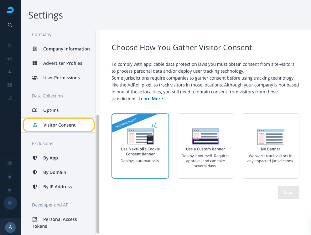 - Navigate to Settings > Data Collection > Visitor Consent.