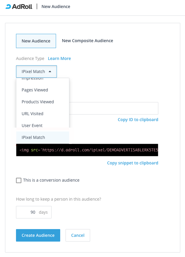 Step 2: Create an iPixel Audience in AdRoll