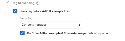 Finally, set up the tag sequencing of your AdRoll pixel tag to fire only after ConsentManager fires: