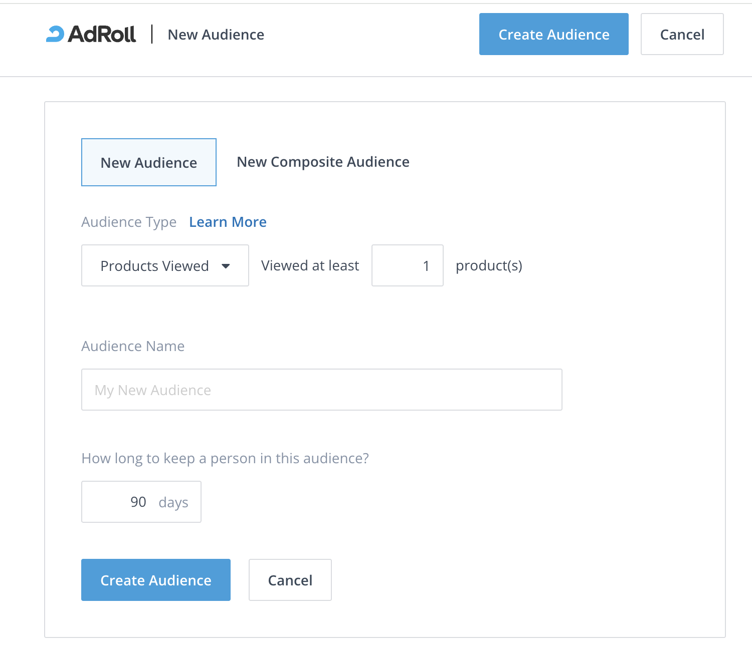 - Click New Audience.