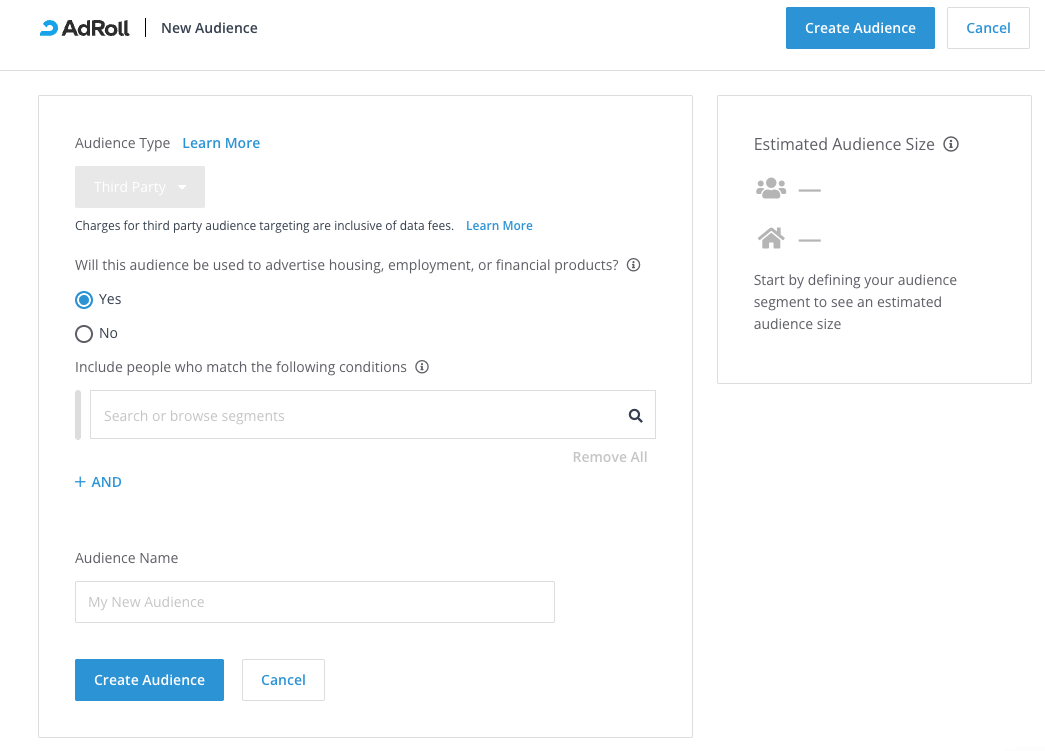 When creating a new Third Party Audience you must confirm whether your ads promote housing, employment, or financial services or products.