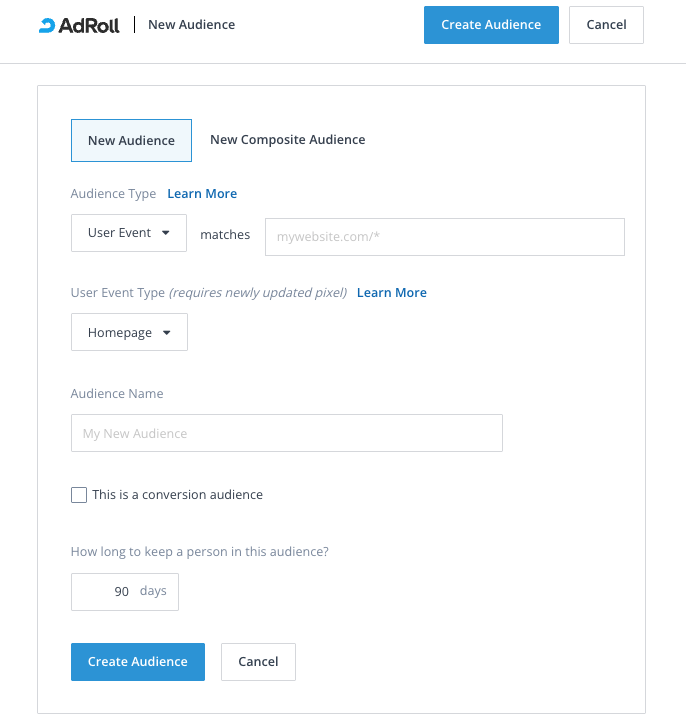 Access to create Event-based audiences is available with all AdRoll packages.
