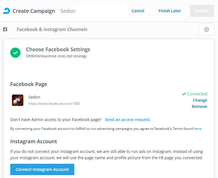 Note: Instagram accounts can only be connected after adding a Facebook page.