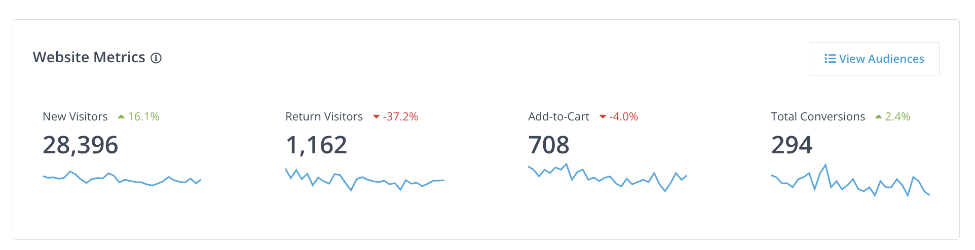 If your website or Ecommerce store is actively utilizing our onsite pixel, this tile will showcase aggregated performance data, including traffic, conversions, and user engagement. Gain a quick understanding of your website's overall effectiveness and identify top-performing pages or products.