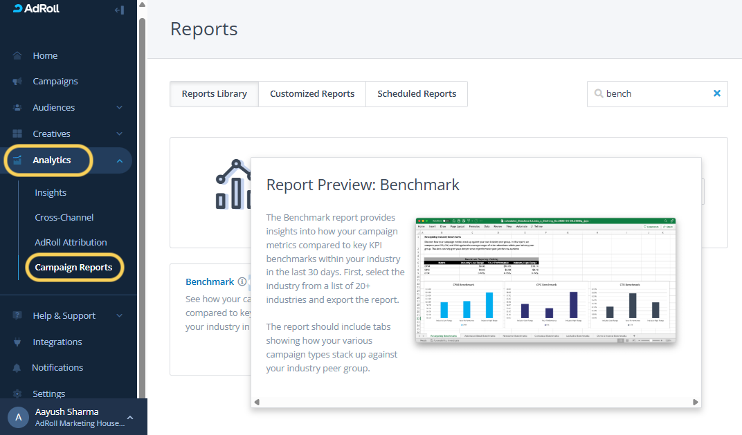 Note: The report will only populate if you are running a campaign that corresponds with any available benchmark report.