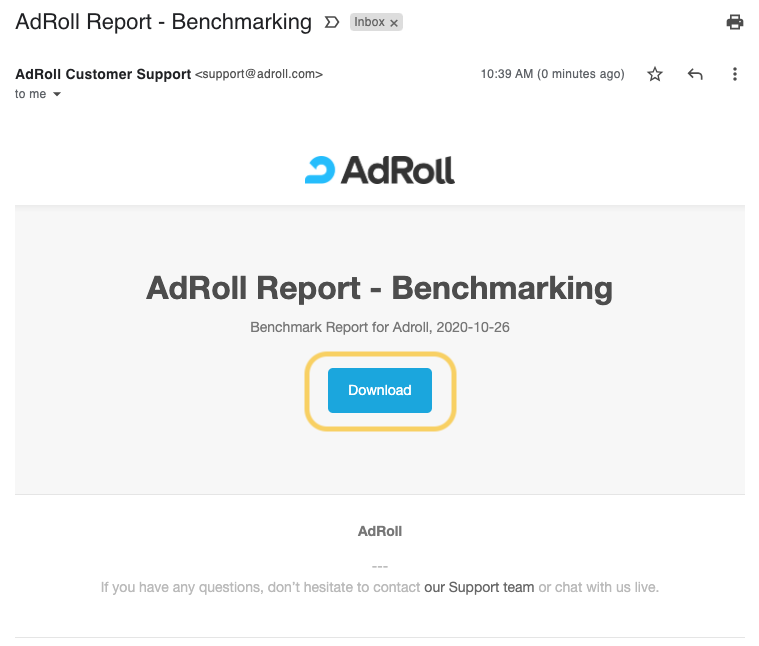 - Click Export. The benchmark report will be sent to the default email on your account.