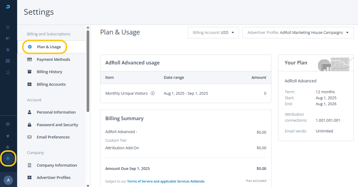 To find your active AdRoll plan: