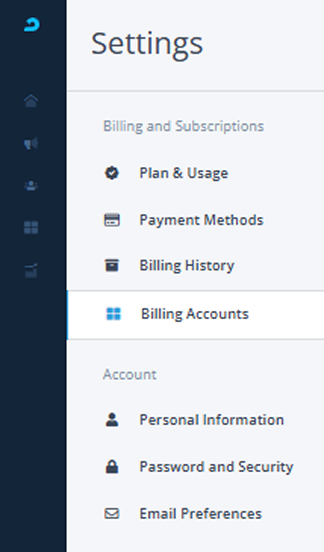 Log in to AdRoll and navigate to Settings > Billing and Subscriptions > Billing Accounts.