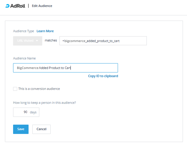 BigCommerce Website Audiences are available for all AdRoll plans. Integrating your BigCommerce store with AdRoll is required.